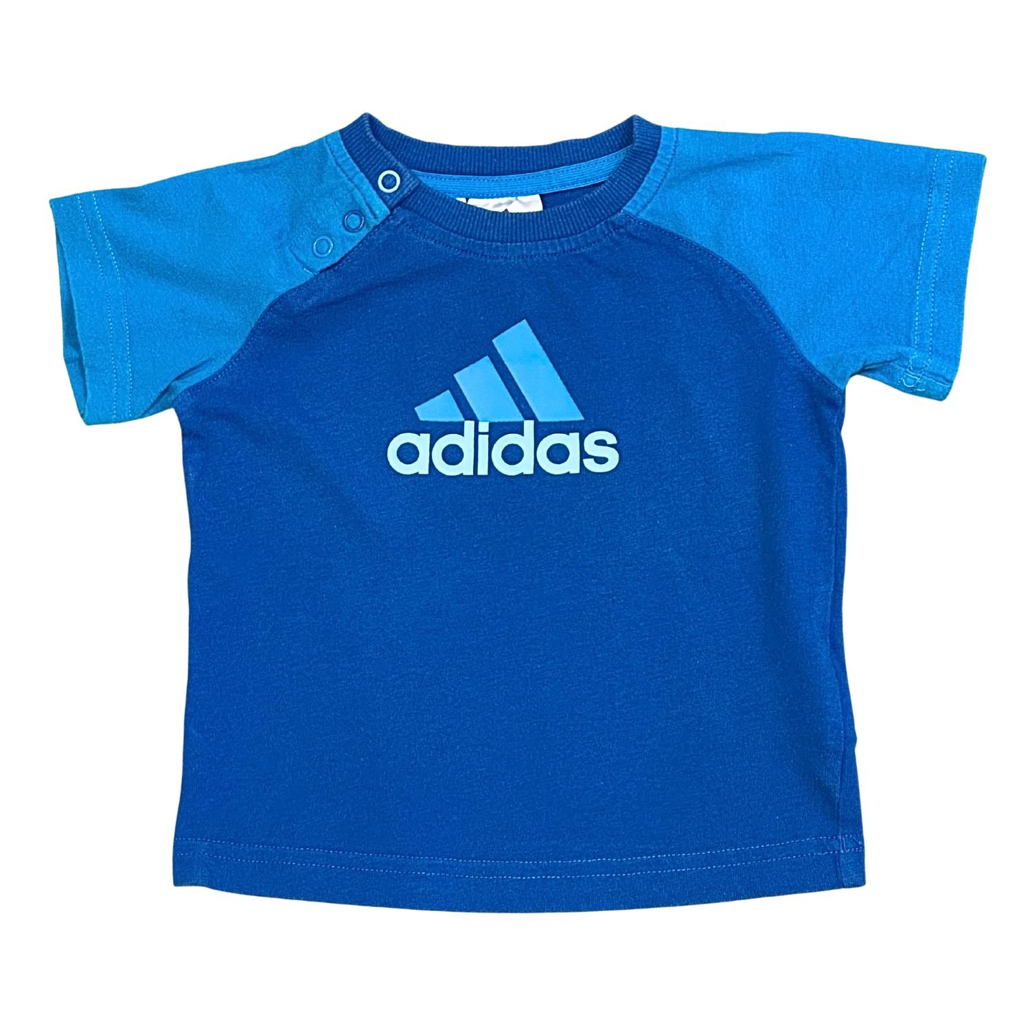 El primer logo. Remera Adidas azul para bebés deportistas.• Marca: Adidas• Estado: Como Nuevo (Grado A+)• Talle: 80 cm (9-12 Meses)