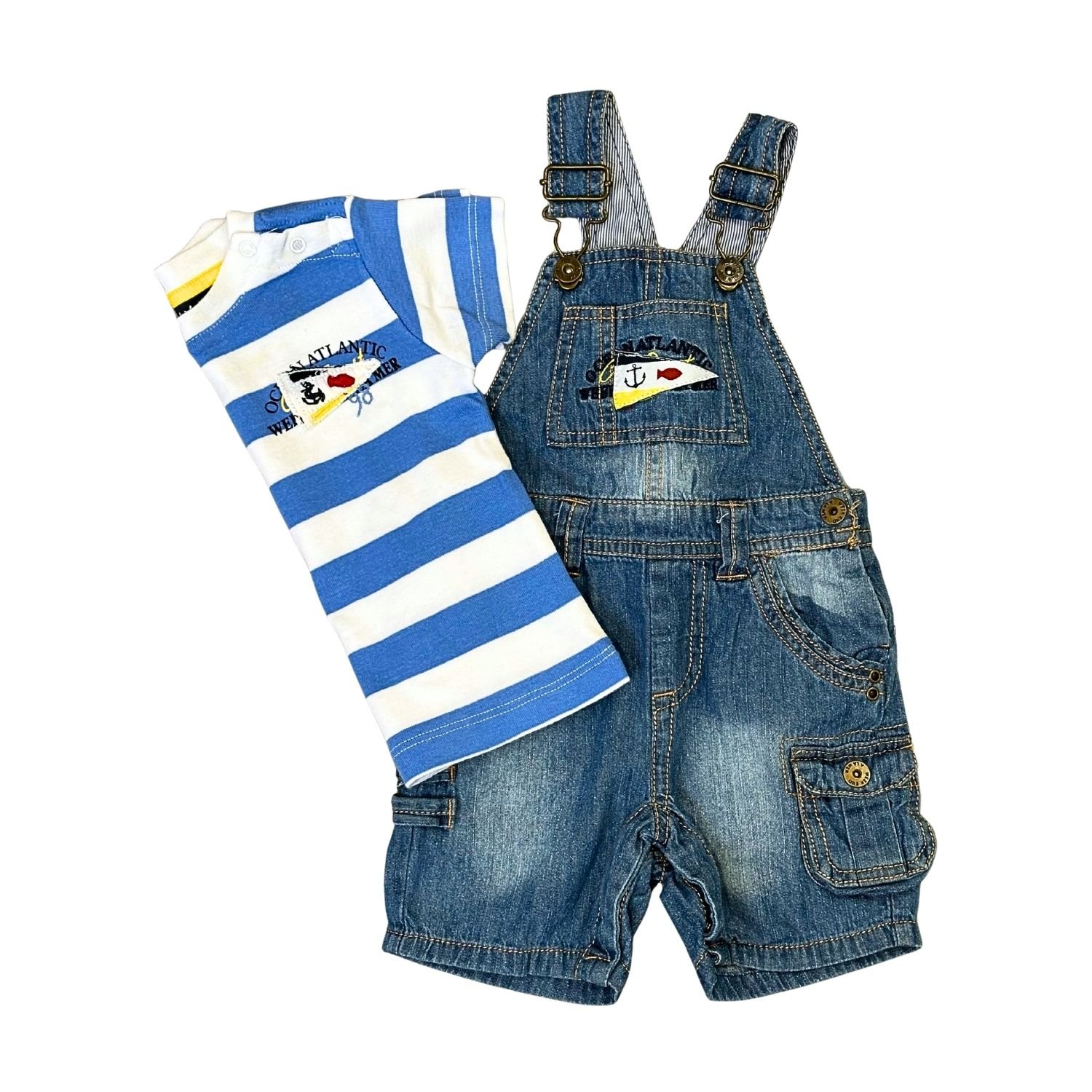 El encanto del estilo náutico. Jardinera de jean resistente y llena de detalles.• Estilo: Jean Clásico• Estado: Seminuevo (Grado A)• Talle: 12 Meses